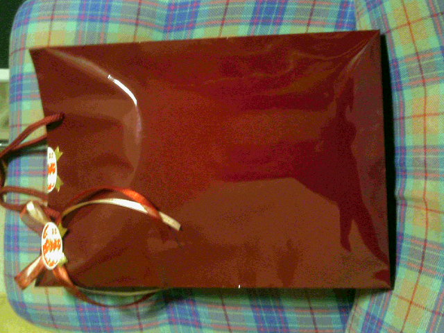 あ、昨日編んでたマフラー編み終わりました♪ちゃんとラッピング(?)したです☆